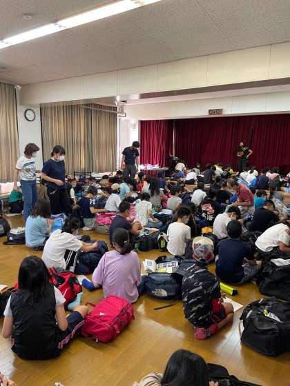 7時30分から出発式、7時45分にバスが学校を出る予定です。