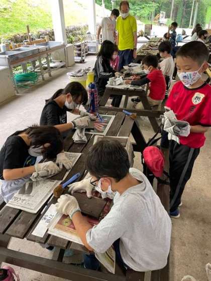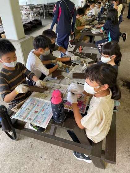 たわしですすを取り除き、新聞紙でこすって、つやを出します。