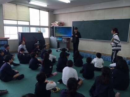 4月13日(月)外国語活動でクレア先生に英語の指導をしていただきました。給食も6年2組に入っていっしょに食べていただきました。本校では、子どもたちの英語によるコミュニケーション能力を育むため、できるだけ多くの時間を英語教育に充てています。