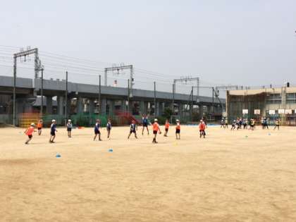 4月16日(木)5年生の体育の授業です。このところ雨続きでしたが久しぶりの運動場で子どもたちは元気いっぱいです。