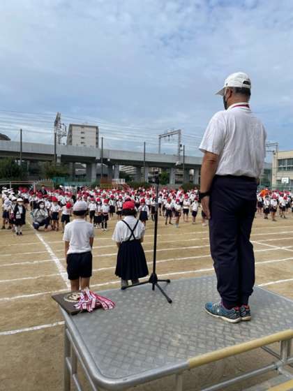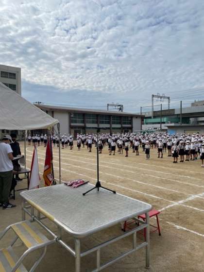 運動会の並び方の確認をした後、開会式の練習をしました。
