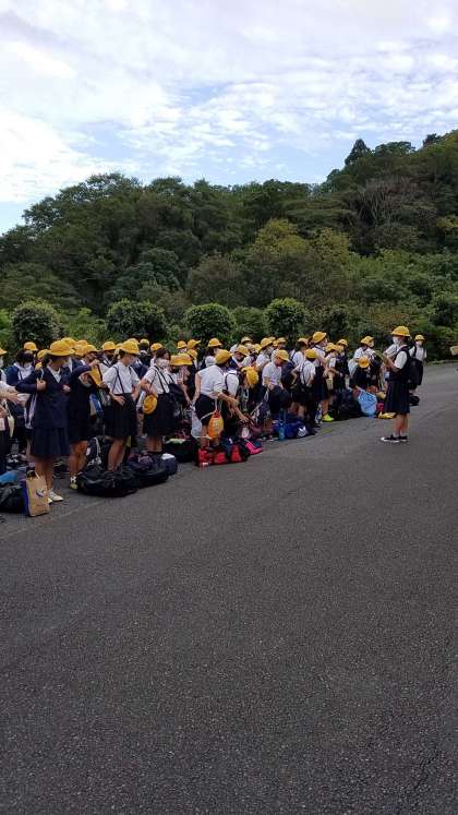 宿舎到着。出発式。