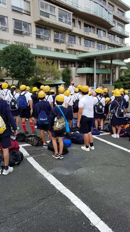 宿舎到着。出発式。