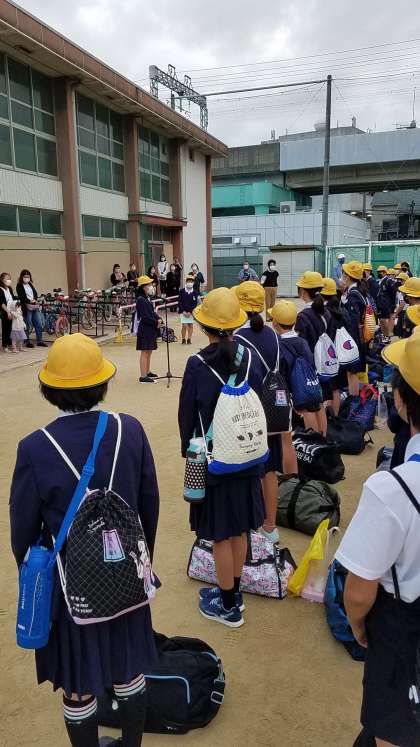帰校式 修学旅行を通じて、仲間を大切にし、成長できたことをこれからの学校生活にいかしていきます。