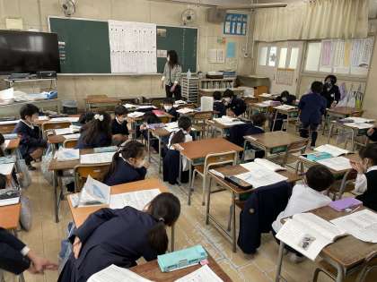 2月18日(金)1年生の国語の授業の様子です。説明文を読んで、動物が子どもをどのように守るのかを読み取りました。動物ごとの違いや似ていることに気づきがありました。