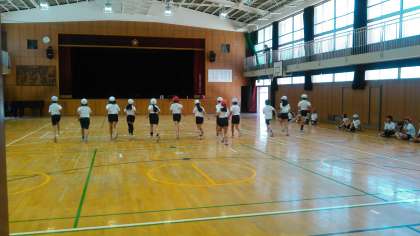 6月4日(木)講堂でシャトルランをしているところです。持久力を測るテストですが、時間内に折り返しができずにリタイヤしてしまった子どもたちもいました。来年は、記録が更新できるようにがんばってほしいと思います。