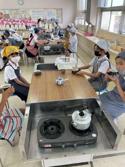 家庭科室でお茶のいれ方を学習しました。