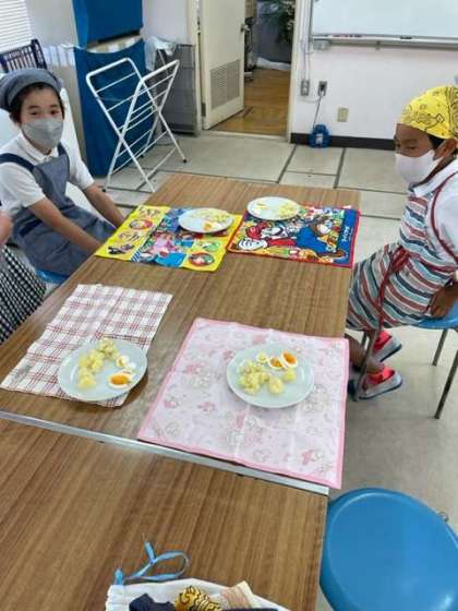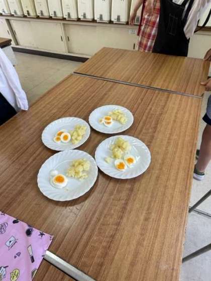 調理実習でゆで卵と粉ふきいもを作りました。