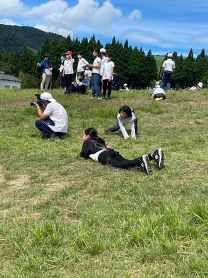 集合写真を撮った後、草原遊びをしています。