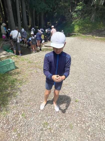 林間学習 魚つかみ