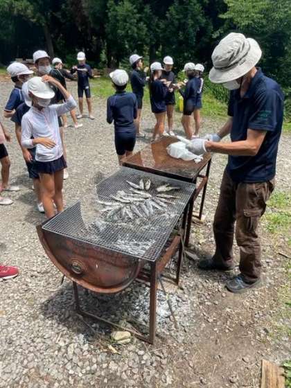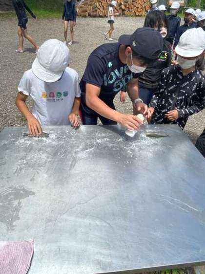 林間学習 魚つかみ