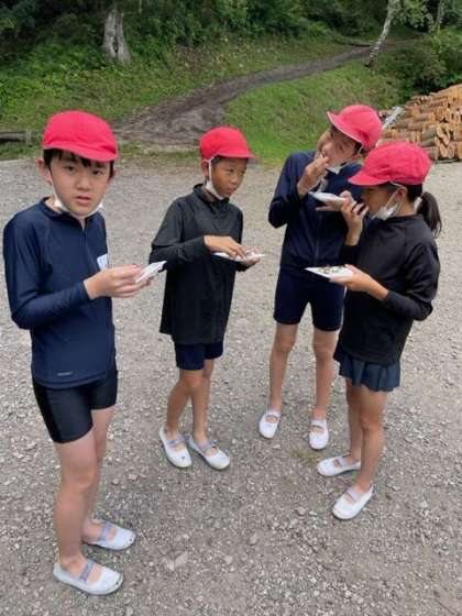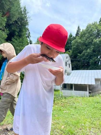 林間学習 魚つかみ