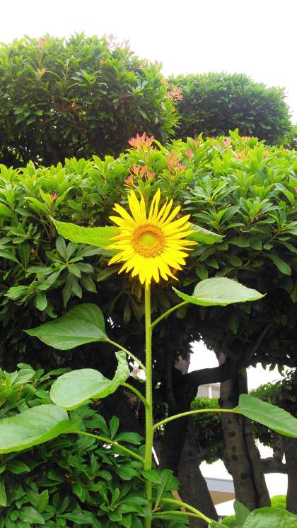 7月8日(水)今朝、門の近くのひまわりが咲きました。大きな黄色の花なので、登校した子どもたちもすぐに気づいて「咲いてる」と話していました。