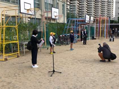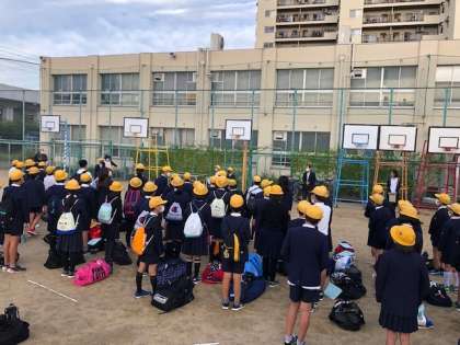 運動場で出発式をしました。