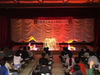 急に始まりビックリしていましたが、幻想的な雰囲気の噴水ショーを見て児童から、大きな歓声があがりました。