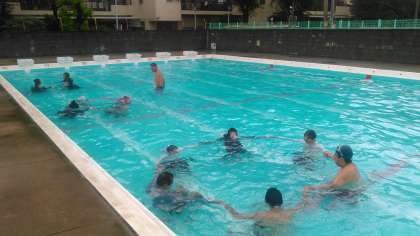 7月22日(水)プール開放は、悪天候のため中止になりましたが、午後に教員の水泳研修会を実施しました。大阪市教育センターから白石教育指導員に来ていただいての研修会です。雨の中でしたが、水泳の呼吸法を中心に学びなおした1時間でした。子どもたちの指導に役立てたいと思います。