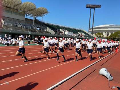 長居陸上競技場で100メートル走、400メートルリレー、800メートル走に出場しました。