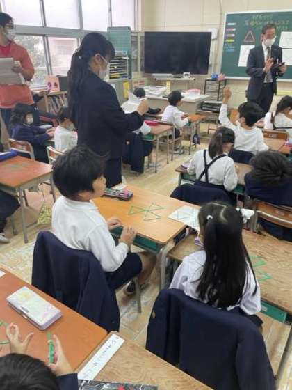 「かたちづくり」の学習をしました。棒を使って、さまざまな形を作ることができました。