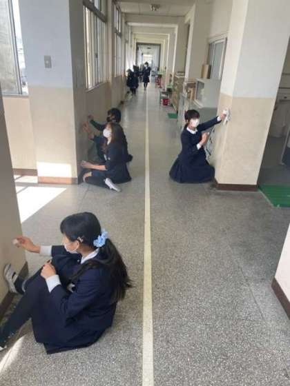 卒業を前に、校舎の清掃をしました。家庭科室などの特別教室や廊下をきれいにしました。