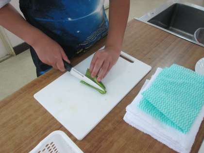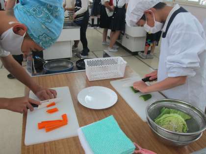 野菜の種類によって切り方を変えました。火の通り方もちがうので、工夫して切りました。