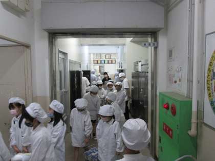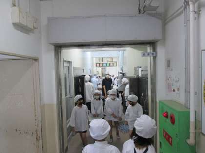 多くの子どもたちが好きな給食の時間です。今日の献立は、少し苦手に感じる子どもが多いかもしれません。それでも、嬉しそうに給食室へ取りに来ています。