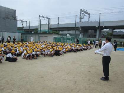 校長先生からは、「落ち着いて避難すること」「日頃から防止をかぶること」等についてお話がありました。