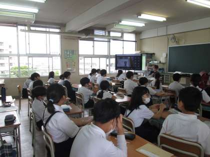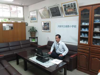 天候不良のため、今年度初めてオンラインによる児童朝会を行いました。