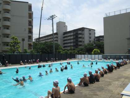 3年生もプール開きです。水慣れをしたあと、浮く・泳ぐ運動をしました。