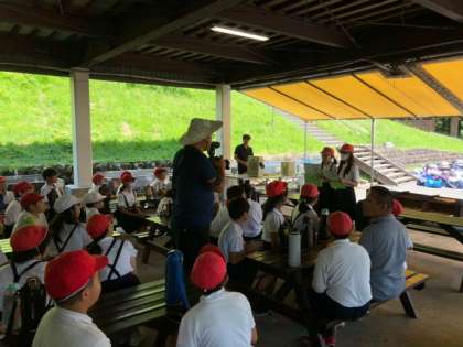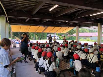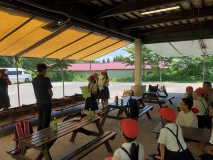 昼食のあとは、開舎式です。宿舎の方とのごあいさつです。「3日間、よろしくお願いします!!」