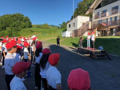 少し眠そうな子もいますが、多くの子は十分睡眠をとることができたみたいです。体操もして、体と頭を起こしました。さぁ、5年生のみなさん、今日も1日頑張りましょう!!