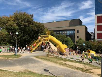 お弁当、おやつを食べ終わったら、自由遊び。遊具で遊んだり、広い公園を走り回ったりして楽しみました!!