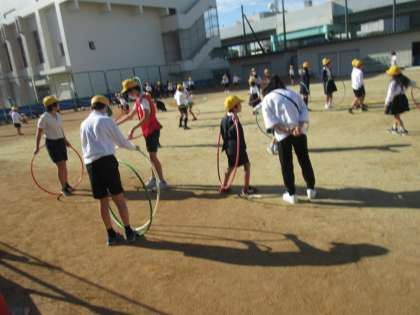 運動場では、「フラフープ」「だるまさんがころんだ」「ころがしドッジ」「大繩」等で遊びました。運動場が少し広くなった分、これまでできなかった遊びもできるようになって、うれしいですね!!