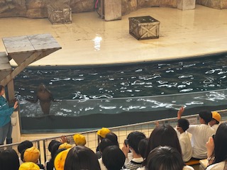 ?アシカショーです。アシカの多彩な芸に大きな拍手!!