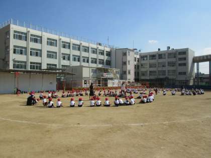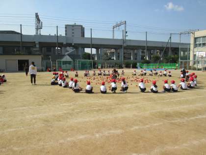 1年生が運動会の練習をしました。団体競技「玉入れ」の練習です。