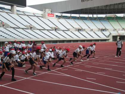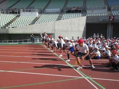 6年生がスポーツ交歓会でヤンマースタジアム長居へ行きました。西淀川区や他の区の6年生とスポーツを通して交流しました。