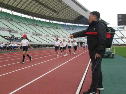 広いスタジアムで子どもたちもビックリ!!貴重な経験なので忘れないでね!!