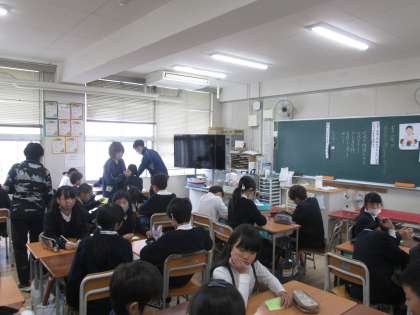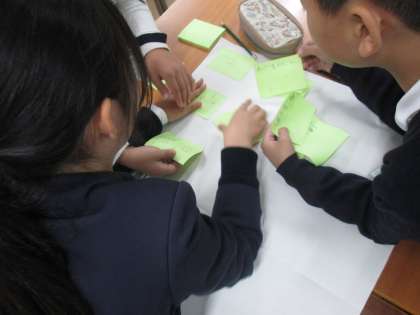 5年生で実習の先生が授業をしました。ボランティア活動について考えました。お返しやお礼がないのにボランティアをするのはなぜか。「人のためになる」ことをやりがいに感じ、自分たちにもできる「ちょいボラ」を考えました。