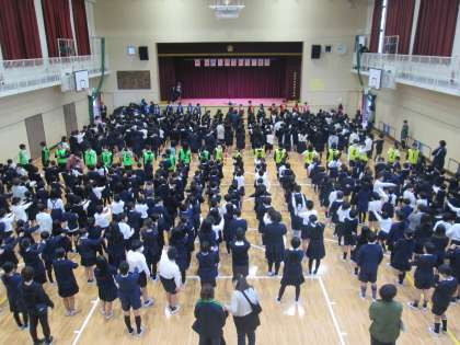 11月20日(月) 講堂完成お祝い児童集会の様子1