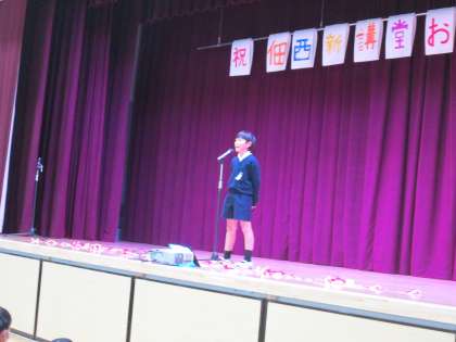 11月になり、講堂が完成したので、全校児童でお祝い集会を行いました。以前に講堂よりも広く、初めて講堂に入ったので、みんな驚いていました。