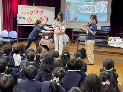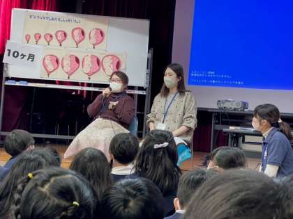 2年生で出前授業「いのちのふれ合い授業」がありました。赤ちゃんがお腹の中でどのように育っていくのか学習したり、実際に妊婦の方々に来ていただいて体験談を聞いたりすることができました。