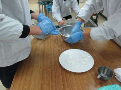 6年生最後のクラスが調理実習をしました。自分たちで白玉団子を作りました。きれいに丸めています。