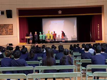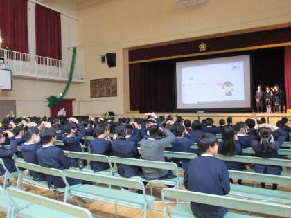 5・6年生が講堂に集まって、「学校保健委員会」がありました。保健委員会や給食委員会の子どもたちが、健康に関することを発表しました。プレゼンあり、劇あり、クイズあり。楽しく学習することができました。