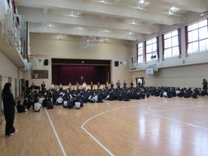 そして最後に、校歌を歌いました。今年度初めて歌う校歌でしたが、とても大きな綺麗な声で歌うことができましたね。みなさんの気持ちがとてもこもっていたように感じて素敵でした!!