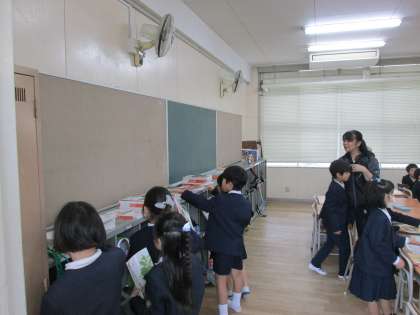 学級開きをした後、みんなで教科書を各教室へ運びました。教室ではその真新しい教科書を見て目がキラキラ!!新しく始まる勉強が楽しみですね!!