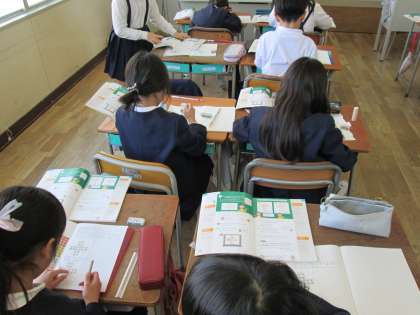 3年生では、算数の学習をしました。一人ひとりが自分なりにまとまりをつくって、それを式で表しました。いろいろなまとめ方がありましたね。