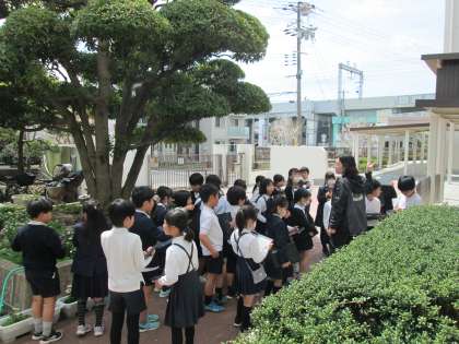 4年生では、理科の学習で外に行きました。春見つけで、花の観察をしたり、タブレットに様子を記録していました。