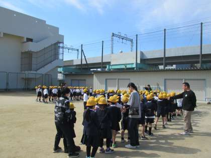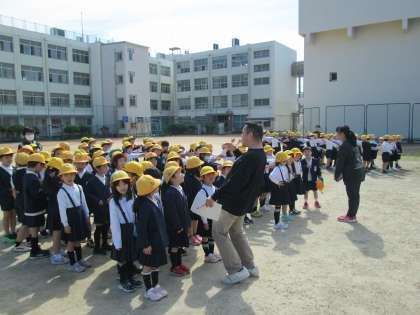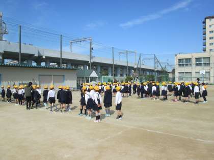 2年生が運動場で隊列の確認をしました。発育測定で身長が決まったので、背の順が決まりました。1列・2列・4列など、素早く並びました。1年生のときよりも静かで、行動も早くてびっくり!!成長してますね!!