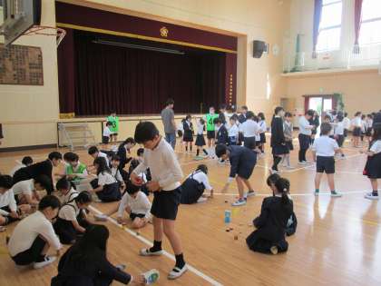 今年度初めてのたてわり遊びをしました。あいにくの雨で運動場は使用できませんでしたが、講堂と教室でいろいろな遊びをしました。