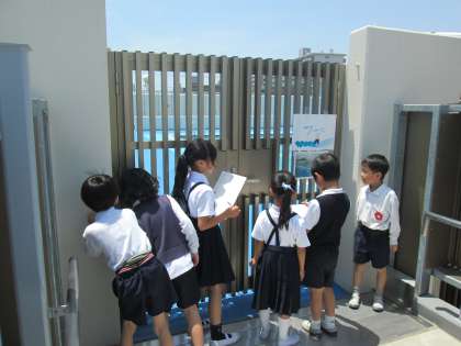 1年生にとっては、あまり馴染みのない教室や行ったことのない場所もあったようで、いろいろな場所から驚きの声が上がりました。1年生のみなさん、佃西小学校のことをもっともっと知ってね!!