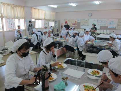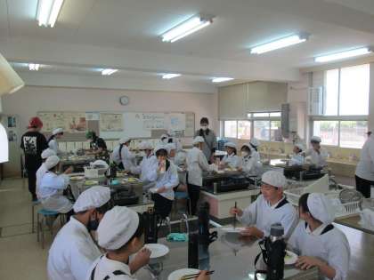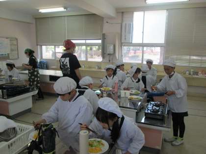 でも、食べ終わったらそこで終わりではありません。片付けがあります。でもさすが6年生。調理している間に手が空いた人が使い終わった食器を洗っていたため、最後の片付けも短時間で済みました。家庭科の先生も「6年生は手際がいい!!」と褒めていましたよ。